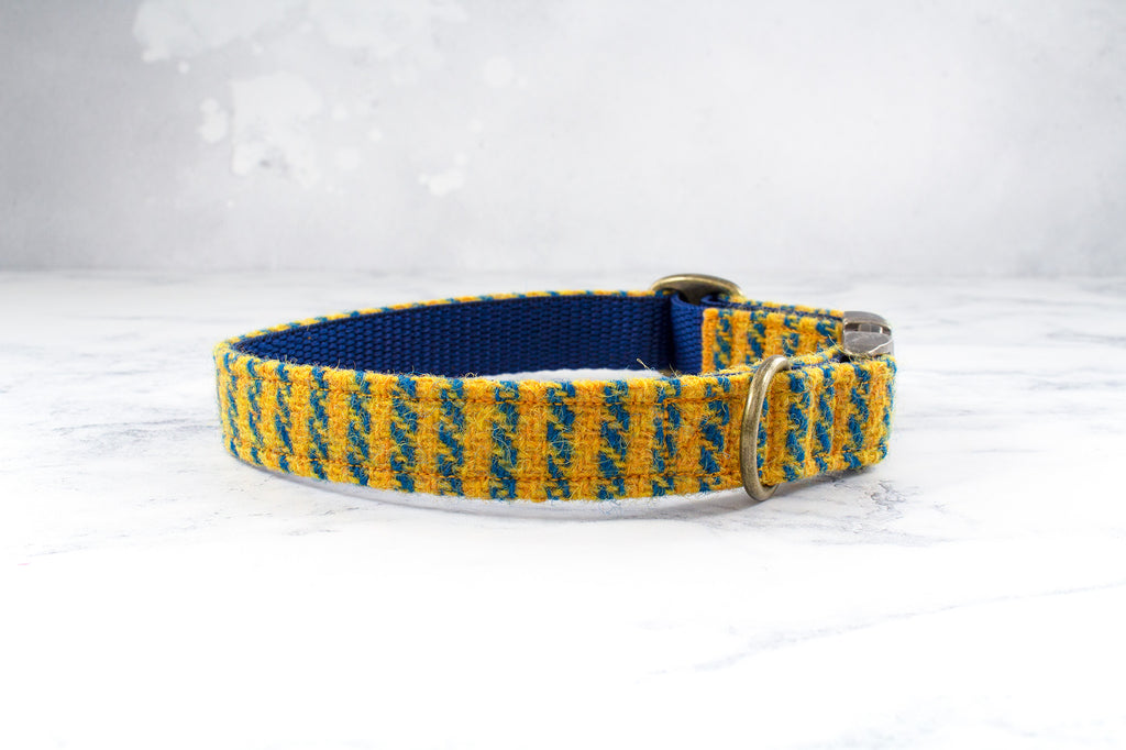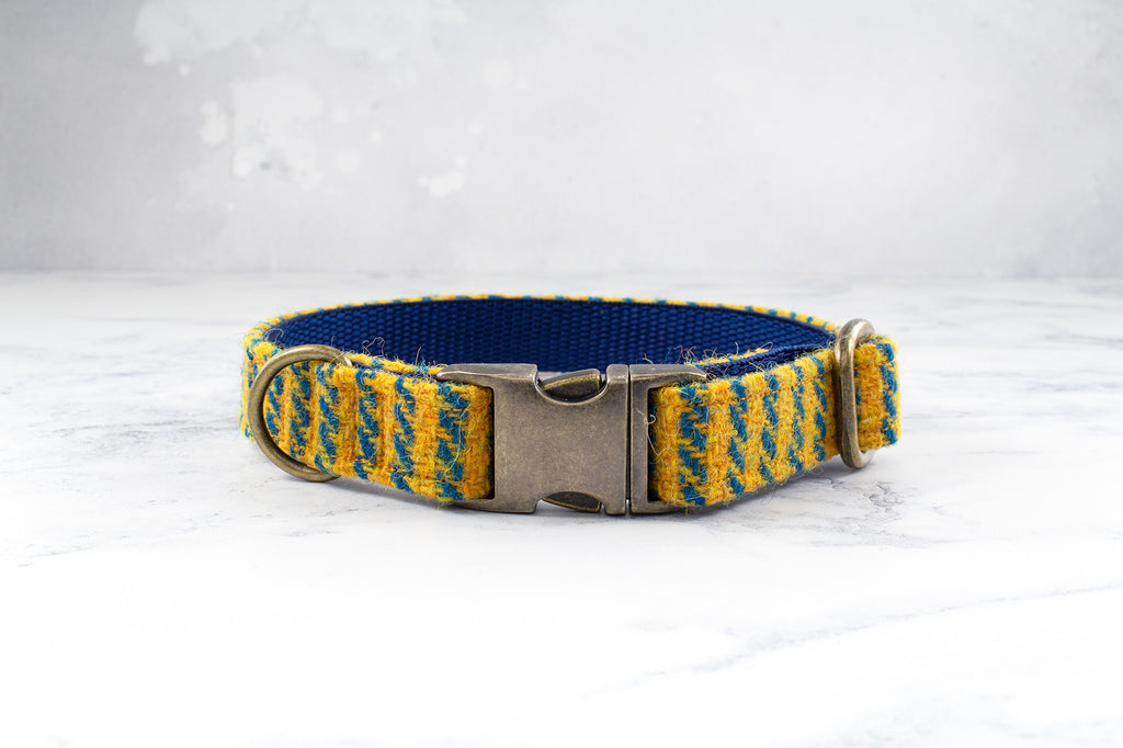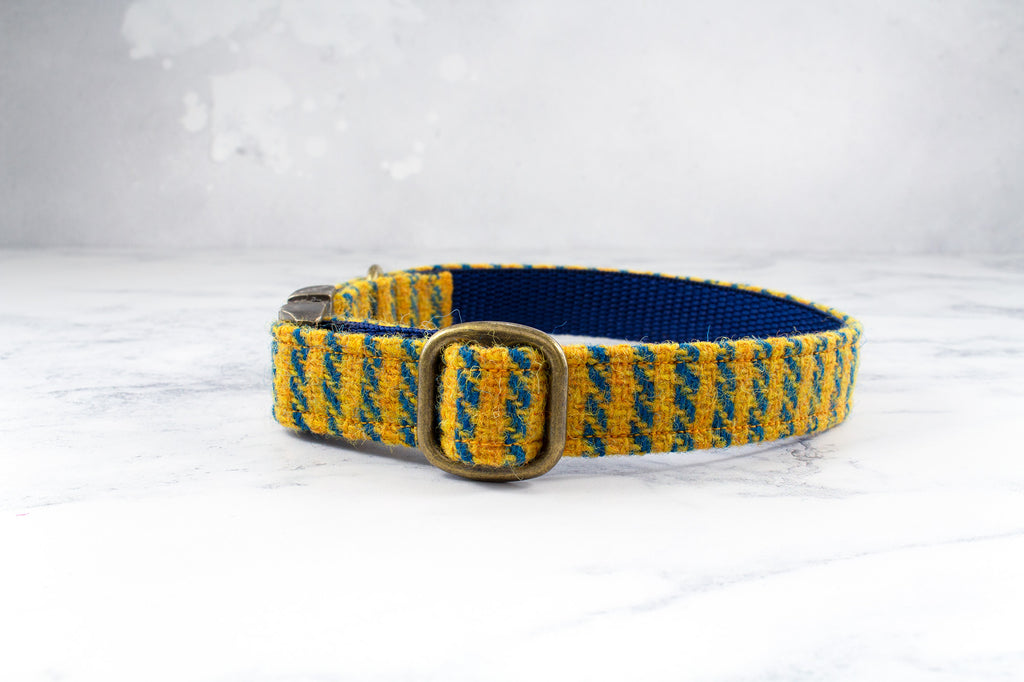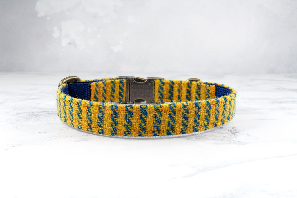 Dog Collar Harris Tweed® - Yellow and Blue Stripe