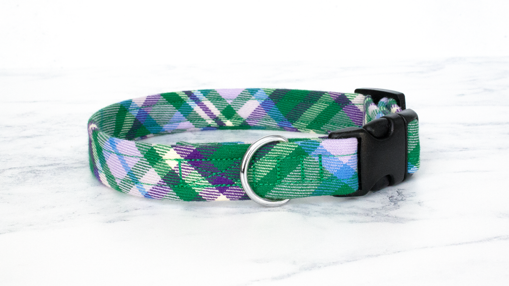 Dog Collar and Lead, Tartan with a Twist - Green and Purple