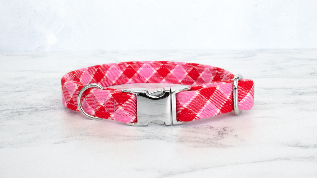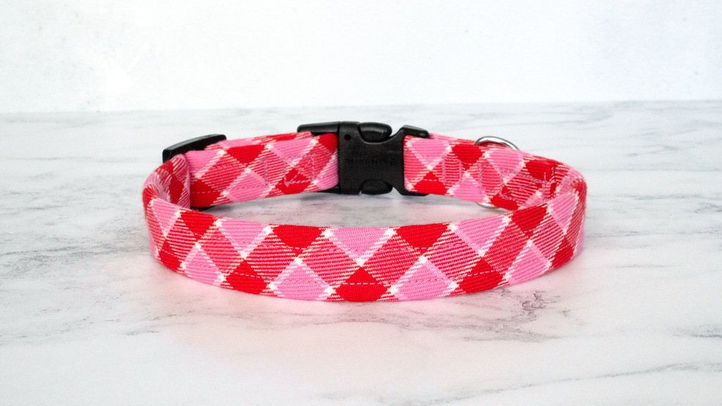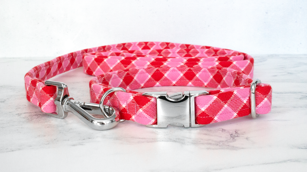 Dog Collar and Lead, Tartan with a Twist - Pink and Red