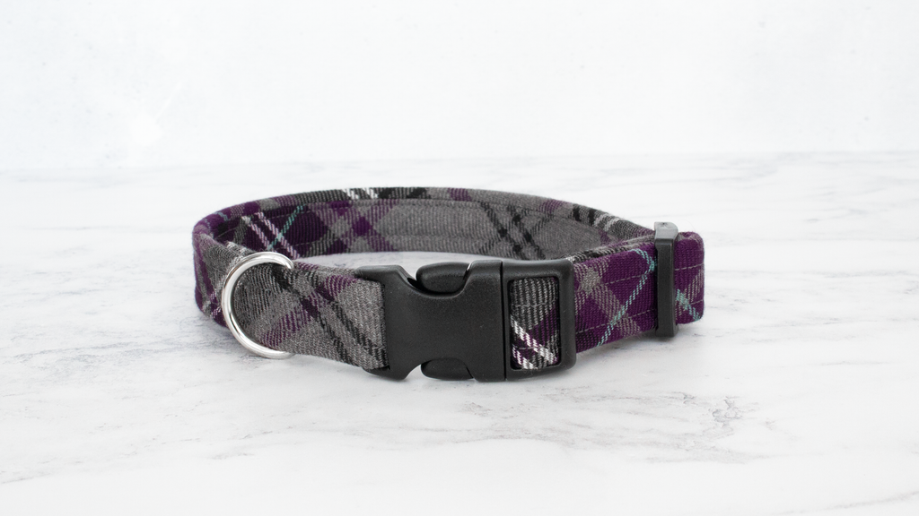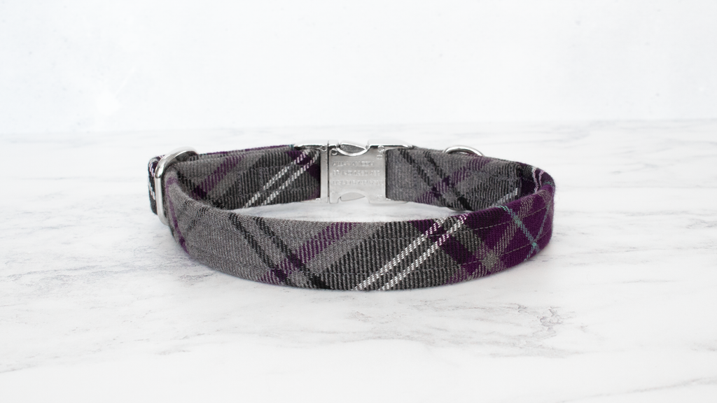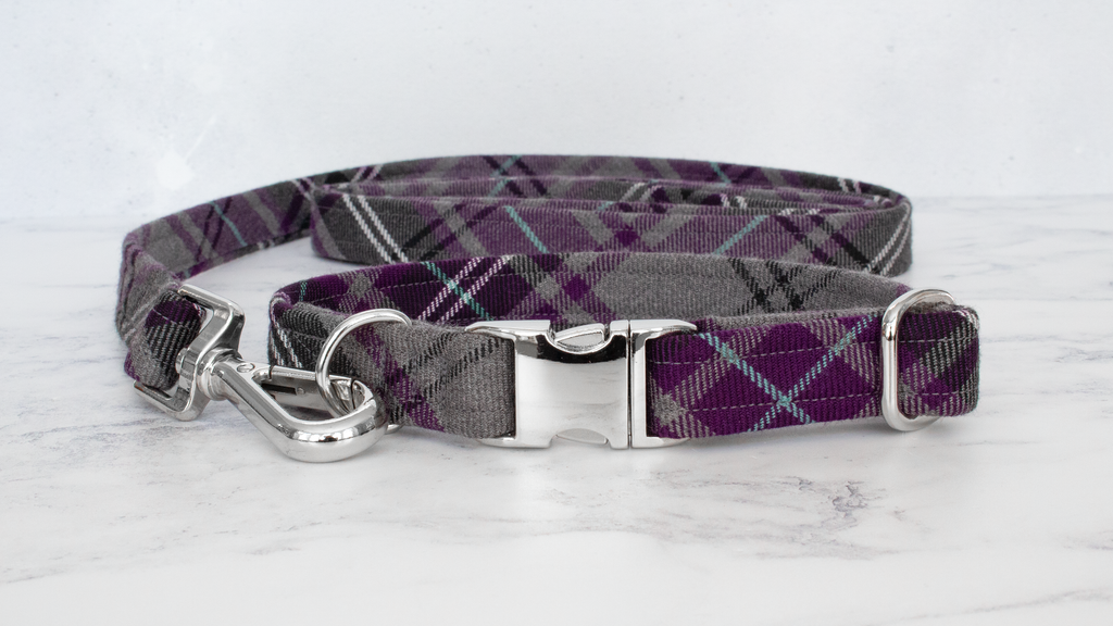 Dog Collar and Lead, Tartan with a Twist - Purple and Grey