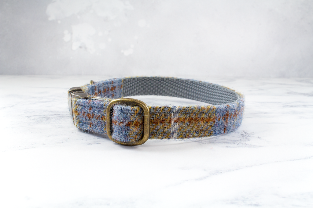 Dog Collar Harris Tweed® - Mustard and Grey/Blue